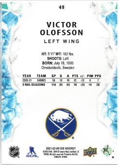 2021-22 UD Ice Lavender Voctor Olofsson č. 49