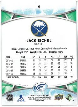 2020-21 UD Ice Green Jack Eichel č. 9